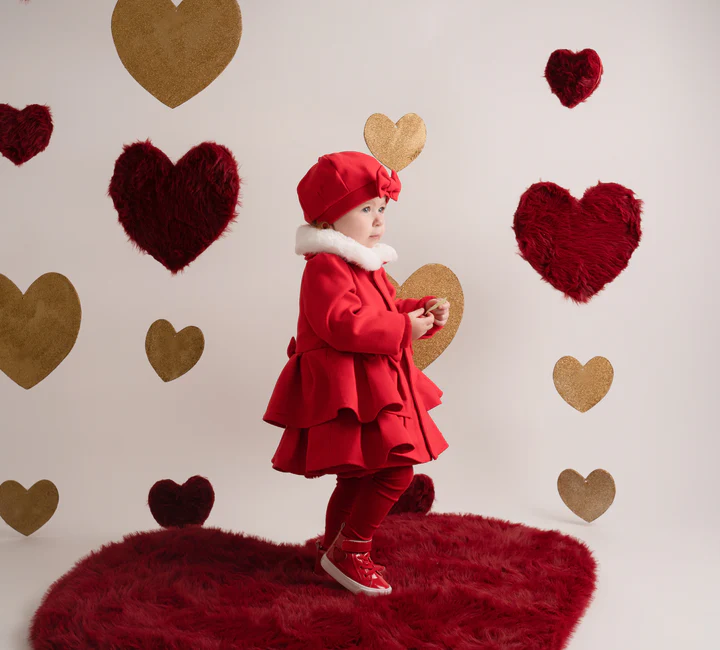Little A Girls Red Heart Embroidered Bow Jacket with Frilled Hood – KAIA