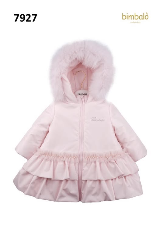 Girls Bimbalo Pink Fur Hood Jacket and Pearl Trim