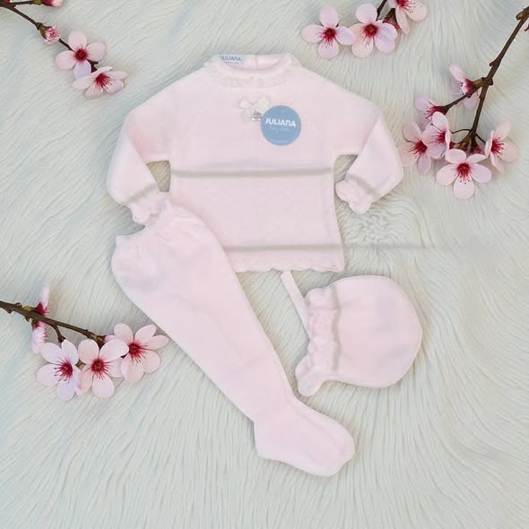 Juliana Baby Girls Dusky Pink Knitted Set With Hat & Booties